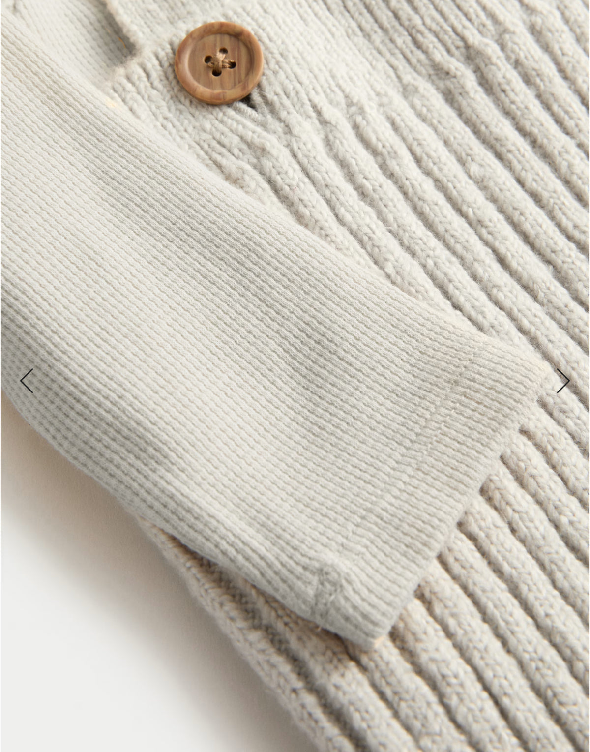Punim triko në ngjyrë gri klasike, me teksturë të thurur që ofron ngrohtësi dhe stil. Material 100% pambuk i butë, ideal për lëkurën e ndjeshme. Kopsa druri për një pamje "vintage" dhe hapje praktike poshtë për ndërrim të shpejtë. Kombinim perfekt mes elegancës dhe rehatisë, i përshtatshëm për çdo stinë.